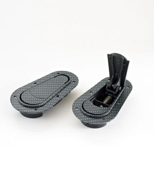 - 2 AeroCatch fasteners featuring a sophisticated carbon fiber finish